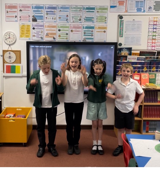In the midst of their creative journey, the students were treated to captivating performance poetry examples and live videos featuring renowned poets such as Michael Rosen & Joseph Coelho. Through these examples, the pupils learnt how poetry is not only relatable and fun but also a powerful tool for expressing emotions and thoughts. They engaged in insightful discussions on the performance techniques employed by poets, including intonation, tone, tempo, and volume, which play a crucial role in conveying meaning to the audience. The day was filled with wonder as we explored poetry ideas and performance techniques, paving the way for an exciting journey of creating our own poems.